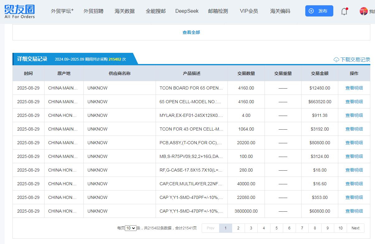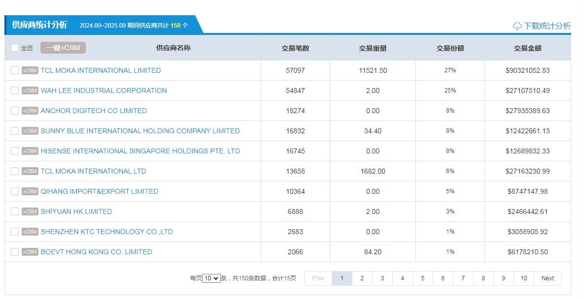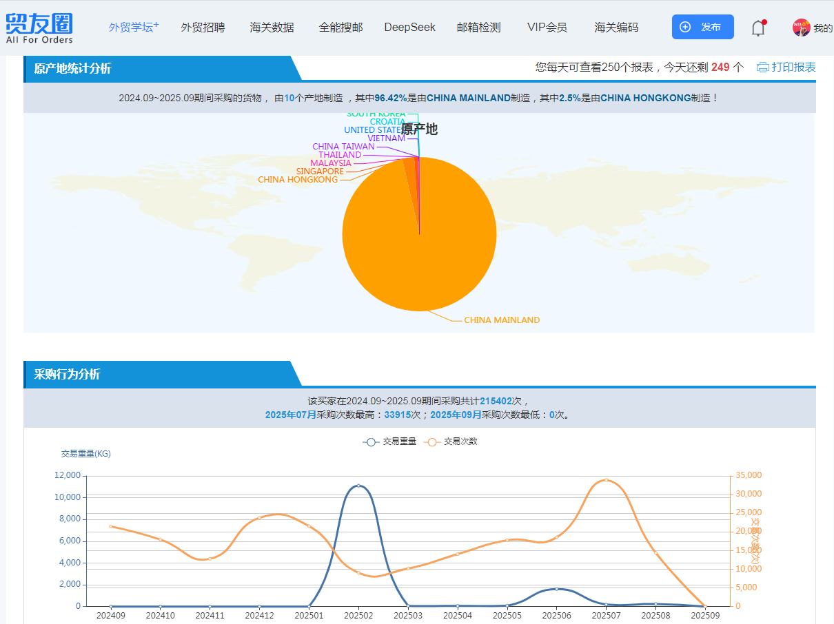 供应商来源:可以清楚地看到这个客户过去主要从哪些国家、哪些中国供应商那里采购。如果你发现他同时从多个供应商拿货,说明他有多元化采购的需求,你就有机会成为其中之一。