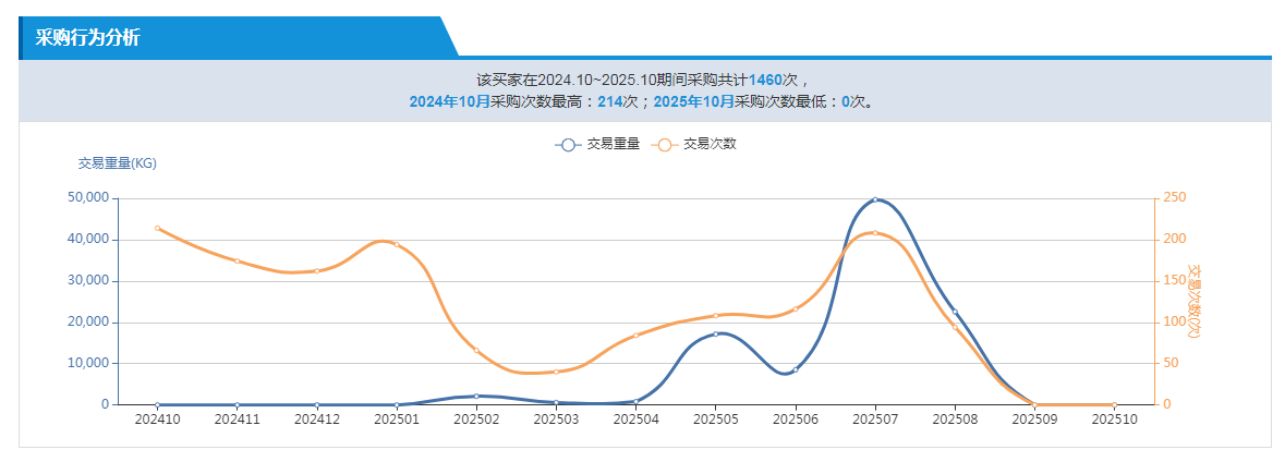 看采购趋势: 分析该买家近一年的采购数据是上升还是下降。上升趋势代表业务在扩张,需求旺盛。
