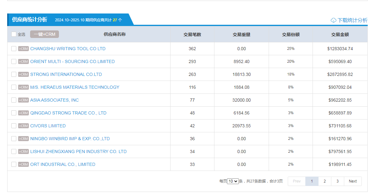 看供应商分布: 查看该买家从哪些国家采购。如果他已经从中国多家公司采购,说明他接受中国供应商,你的机会很大。如果他主要从其他国家采购,你可能需要思考如何用价格或质量优势替代。